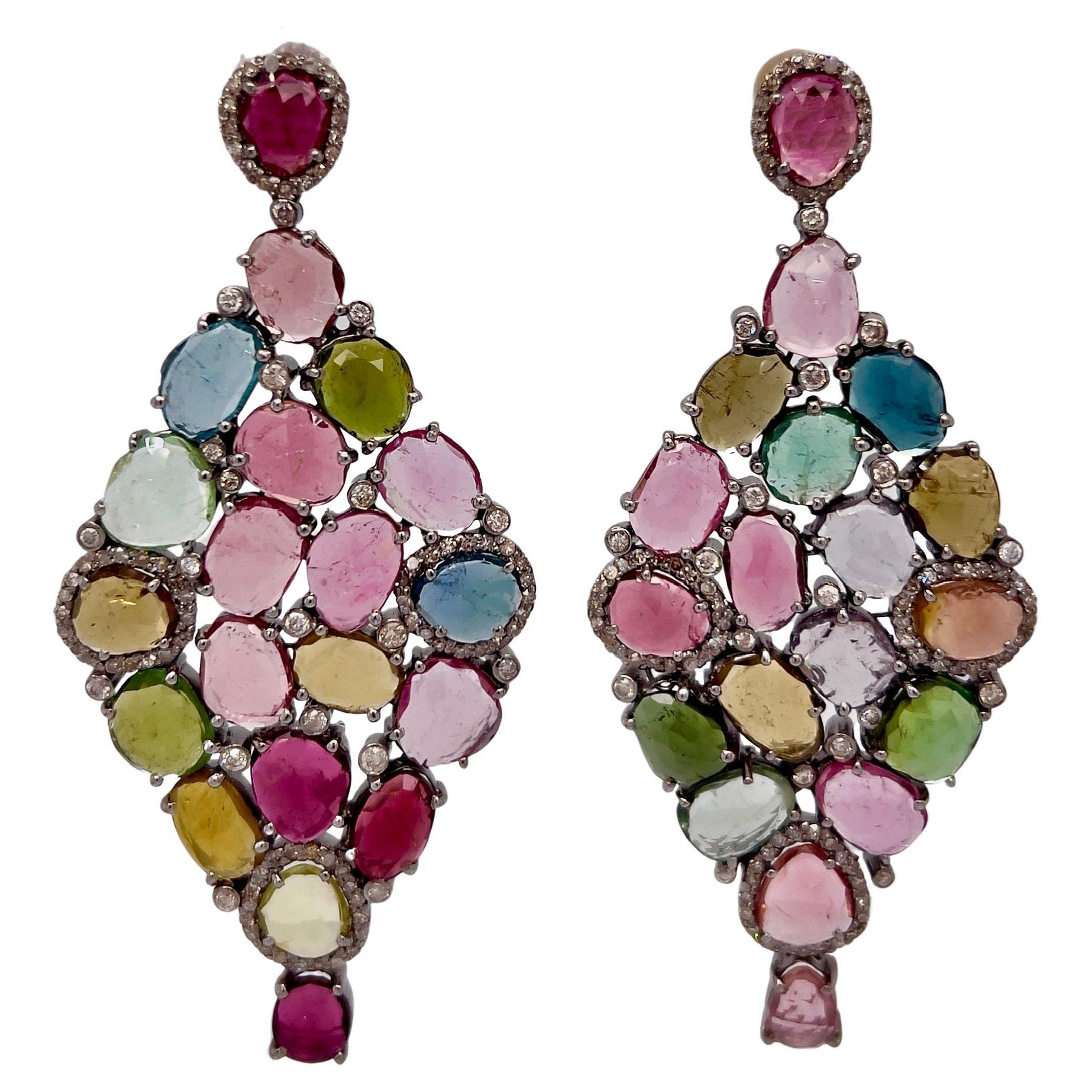 Fine Multi Colored 34 Carats Tourmaline And Diamond Earrings At 1stdibs
